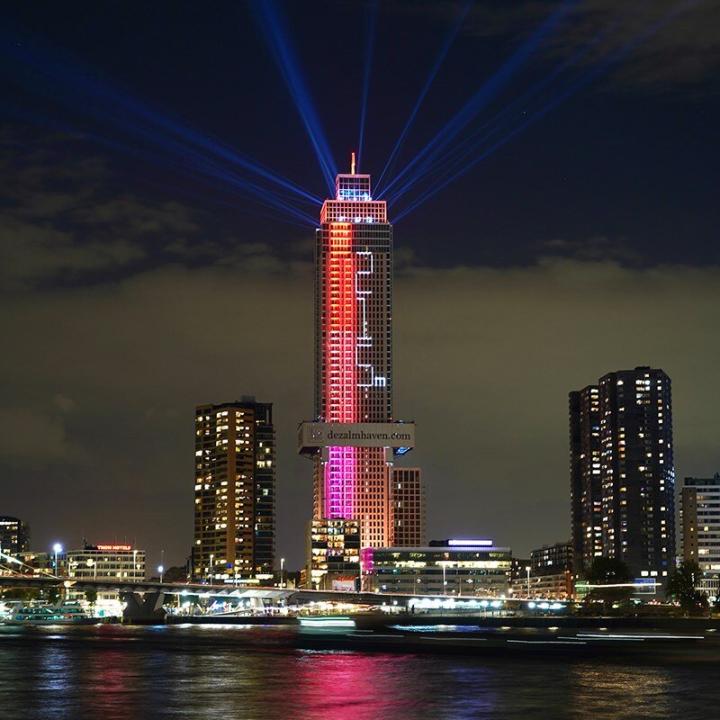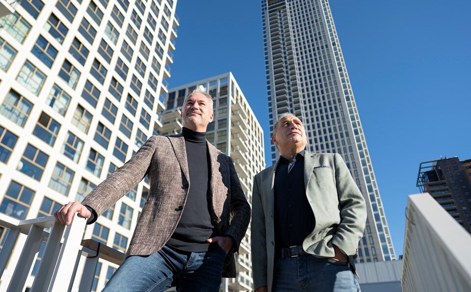 Met een fantastische lichtshow werd eind 2021 het hoogste punt van De Zalmhaven gevierd. De beelden gingen de wereld over. Voor Edwin van Leeuwen, ontwikkelingsmanager bij Amvest was dit een hoogtepunt. “Opeens staat De Zalmhaven écht op de kaart. De reacties waren geweldig en dat maakt me trots.” Sinds 2013 is Edwin samen met Michelle Corbeau, projectontwikkelaar bij AM, vanuit Zalmhaven CV de ontwikkelaar van het project. Dat is een samenwerking tussen Amvest en AM. “Het project bestaat uit 485 appartementen, maisonnettes, penthouses en stadswoningen. Naast de hoge toren staan twee midrise woontorens met een mix van koop- en huurappartementen. Vrijwel iedere verdieping is anders ingedeeld met een grote differentiatie aan woningtypes van 60 tot wel 700 m2. De bouw is in handen van BAM Bouw & Techniek."