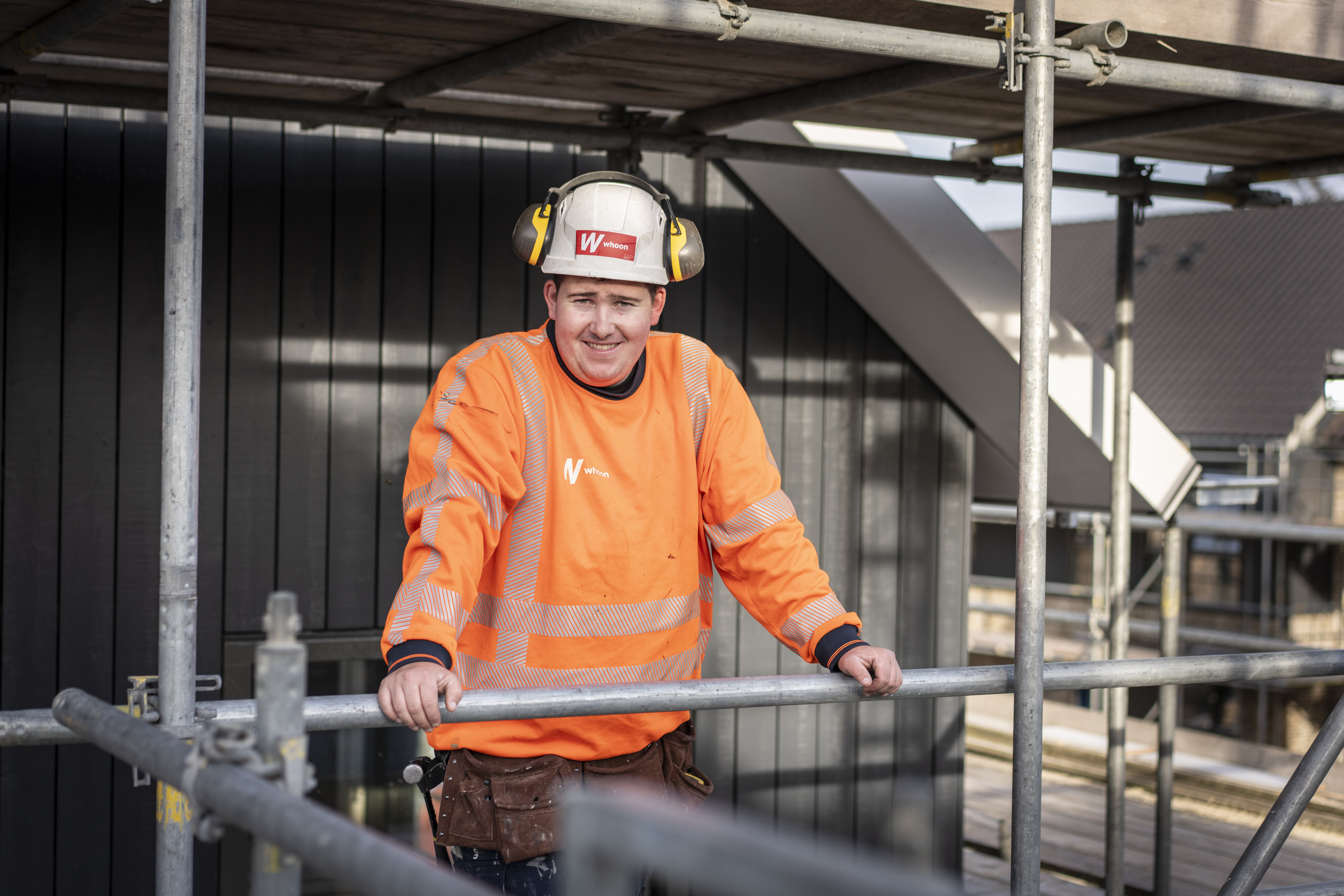 “Met een hamer in de hand ben ik grootgebracht. M’n opa timmerde, m’n vader bouwt, en ik liep als jochie al mee. Gewoon doen, aanpakken, meters maken. Zo begon het balletje te rollen. Op m’n zeventiende kwam ik bij Whoon terecht. Daar leerde ik de kneepjes van het vak. Nu werk ik in de ruwbouwploeg. Een topteam, waar ik elke dag met plezier naartoe ga. Wat ik mooi vind? Je ziet wat je gemaakt hebt. Geen dag zonder resultaat. En er zit groei in: wie weet sta ik straks als voorman of uitvoerder op de bouw. Maar eerst: nog meer leren en nog beter worden.”