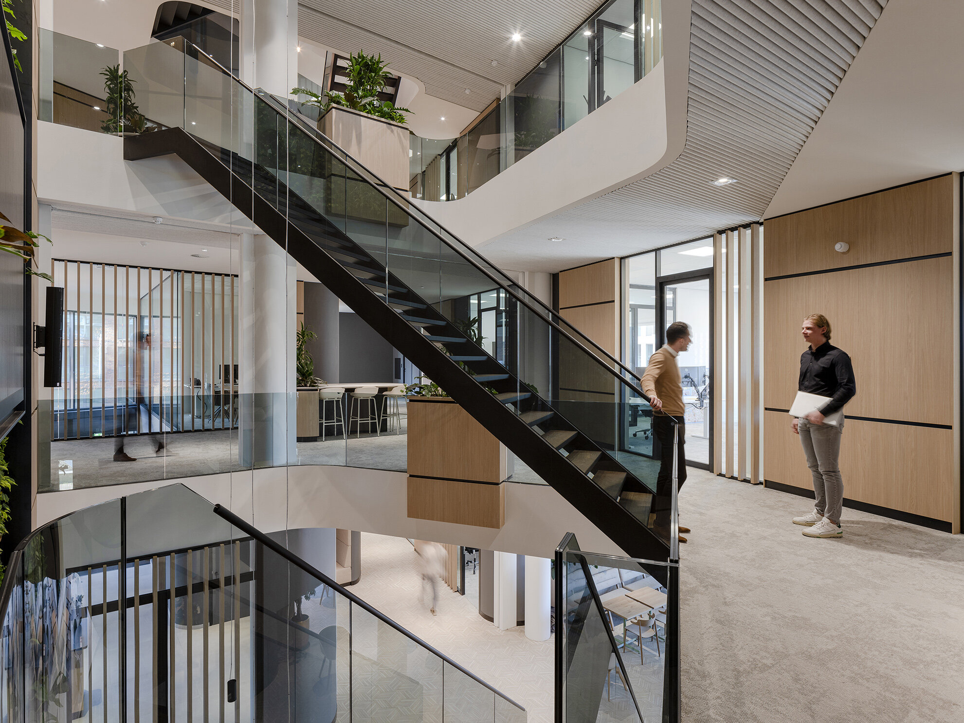 "Nu we een half jaar verder zijn, zien we dat mensen het kantoor omarmen en goed gebruiken. Het grootste compliment voor ons is dat het kantoor fijn aanvoelt. De medewerkers bewegen zich ‘natuurlijk’ door het gebouw en voelen zich er op hun gemak. Ook hun gasten spreken vol lof over de totale beleving. Dat is de mooiste feedback die je als ontwerper kunt krijgen.”